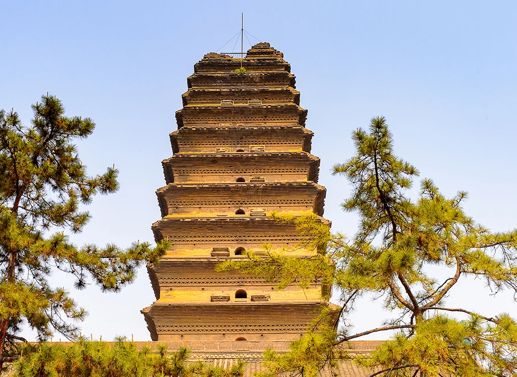 Die Small Wild Goose Pagode ist eine historische buddhistische Pagode, die während der Tang-Dynastie (707 n. Chr.) errichtet wurde. Sie wurde genutzt, um buddhistische Schriften aufzubewahren, die aus Indien nach China gebracht wurden. Die Pagode ist bekannt für ihre elegante Architektur und hat mehrere Erdbeben überstanden – ein Symbol sowohl für spirituelle als auch historische Bedeutung.