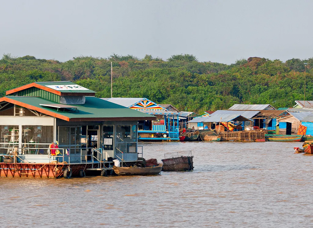 Machen Sie eine Bootsfahrt von Chong Kneas aus und sehen Sie die faszinierenden schwimmenden Dörfer, die sich je nach Wasserstand bewegen. Diese Gemeinschaften haben sich so entwickelt, dass sie alles bieten, was Dörfer an Land haben – Schulen, Tempel und vieles mehr.