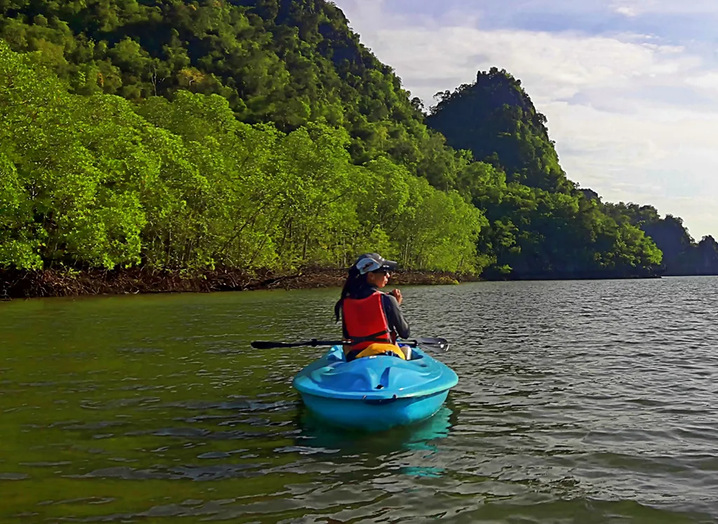Erkunden Sie Langkawis UNESCO-geschützte Mangroven mit dem Kajak! Paddeln Sie durch ruhige Kanäle und erleben Sie die unberührte Natur aus nächster Nähe.