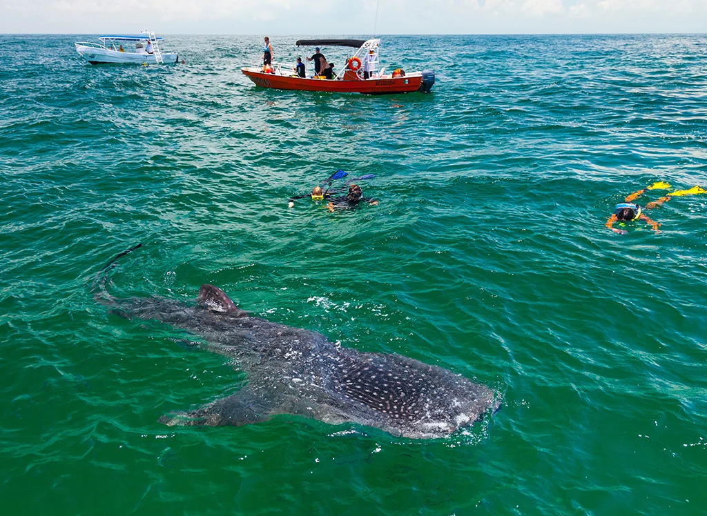 Kommen Sie den beeindruckenden Walhaien im kristallklaren Wasser von Holbox nahe. Halbtägiger gemeinsamer Ausflug mit Transport, englischsprachigem Reiseleiter, Eintritt und leckerem Mittagessen inklusive.