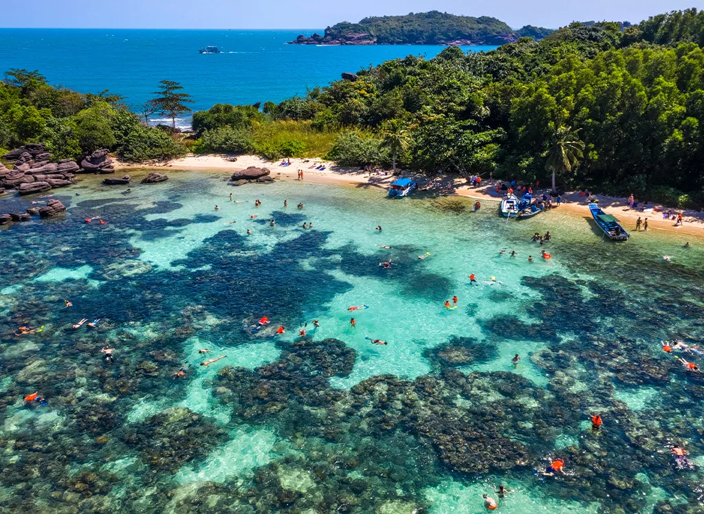 Erkunden Sie vier wunderschöne Inseln mit dem Schnellboot. Genießen Sie Schnorcheln, SUP und Mittagessen auf May Rut Ngoai und Entspannung und Abenteuer auf Thom und Gam Ghi Island.