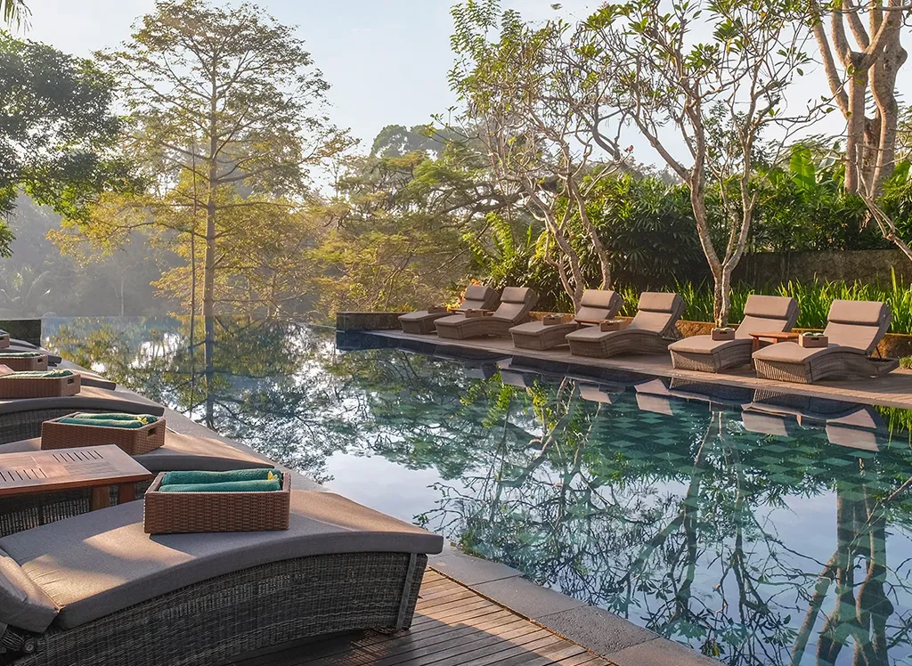 Das Maya Ubud Resort & Spa ist ein Fünf-Sterne-Hotel inmitten der tropischen und üppigen Landschaft von Ubud.