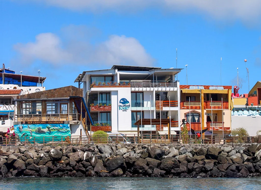 Das Sunset Hotel liegt zentral in Puerto Baquerizo Moreno, direkt an der Anlegestelle im malerischen Hafenbereich der Stadt. Hier haben Sie leichten Zugang zu den Geschäften, Restaurants und touristischen Einrichtungen der Stadt – und Sie können leicht Ausflüge rund um San Cristóbal, Galápagos, unternehmen.