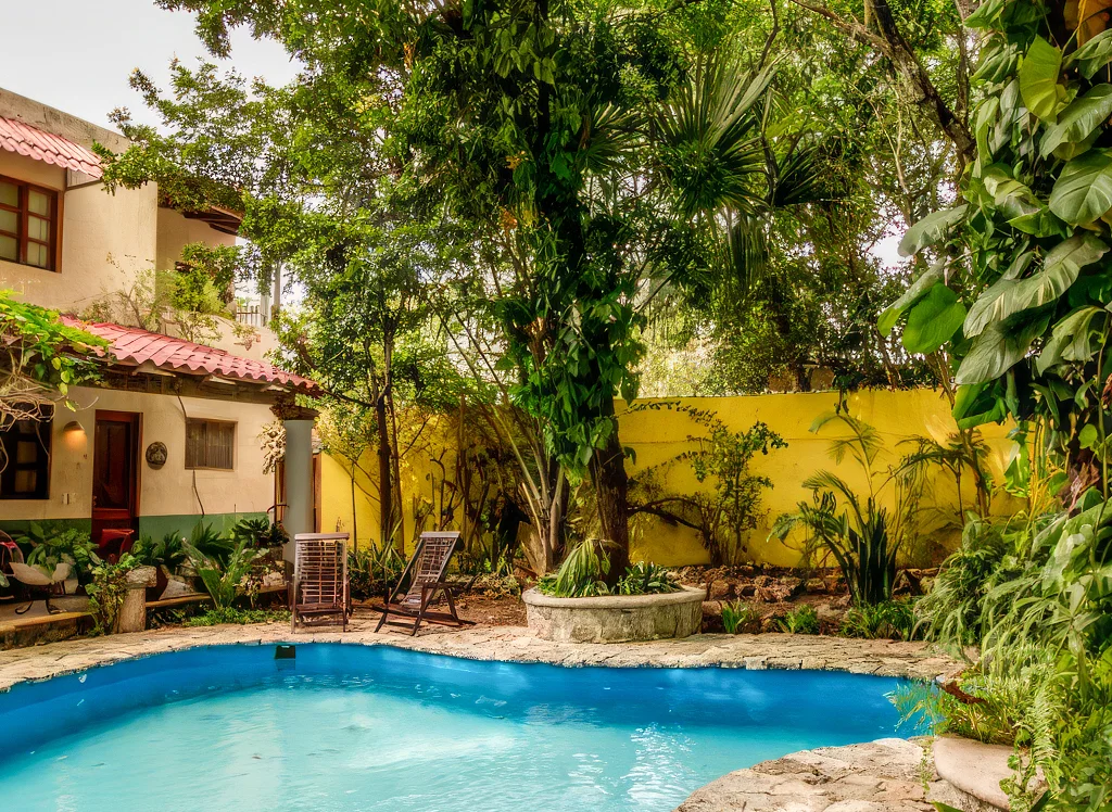 Erleben Sie Casa Quetzal in Valladolid – einladender Pool, üppiger Garten und komfortable Zimmer mit Klimaanlage, WLAN und Safe. Lesen Sie mehr und lassen Sie sich für Ihren Aufenthalt auf Yucatán inspirieren.