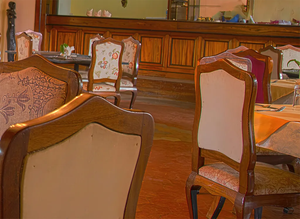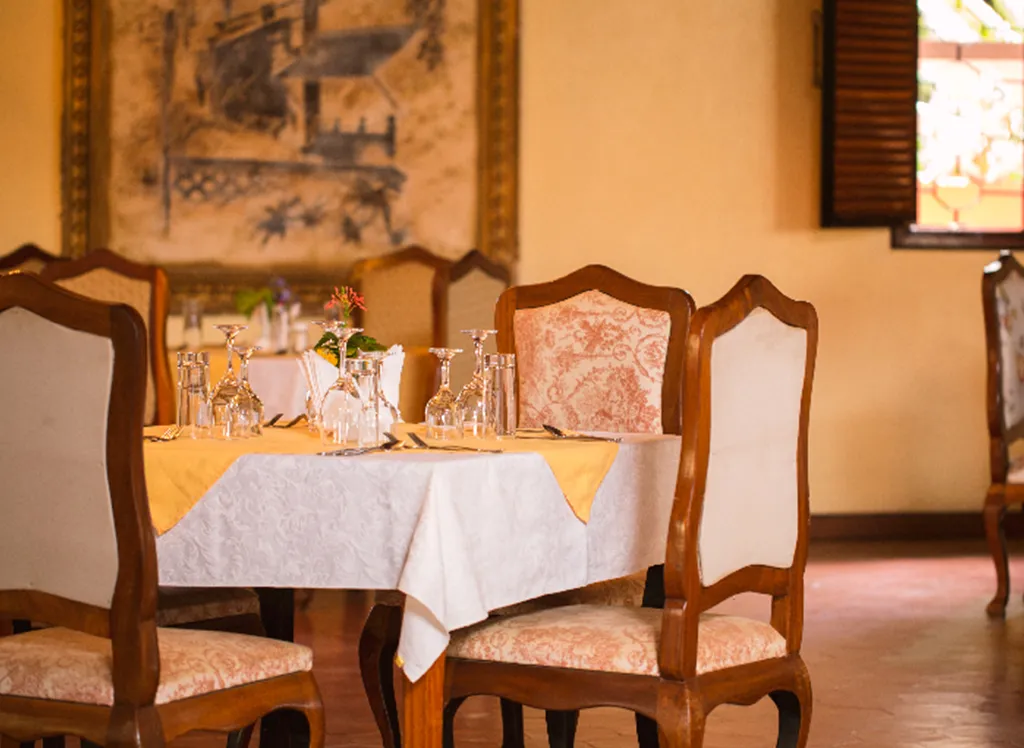 Das Restaurant serviert leckere, afrikanische und internationale Gerichte mit Rohprodukten von eigenem Küchengarten.