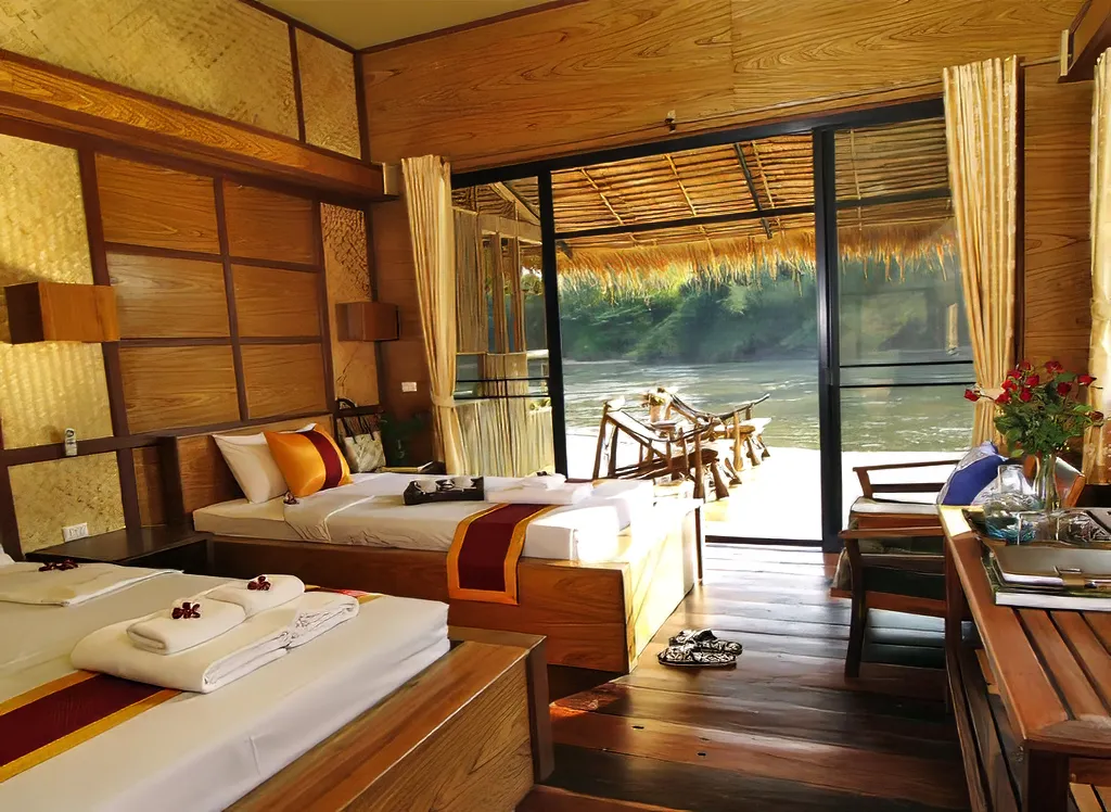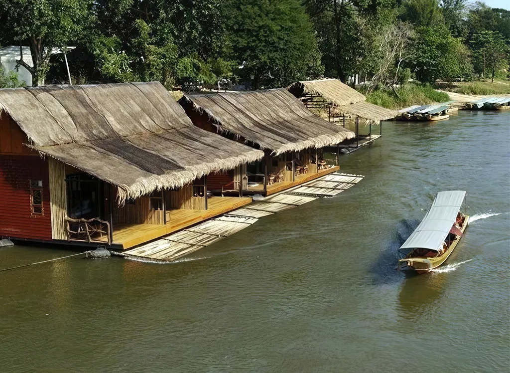 Willkommen im Boutique Raft Resort, das am berühmten River Kwai inmitten grüner Berge liegt und Unterkünfte in schwimmenden Bungalows bietet - perfekt für alle, die die Natur und die Ruhe lieben. Es besteht auch die Möglichkeit, ein Zimmer an Land zu buchen.