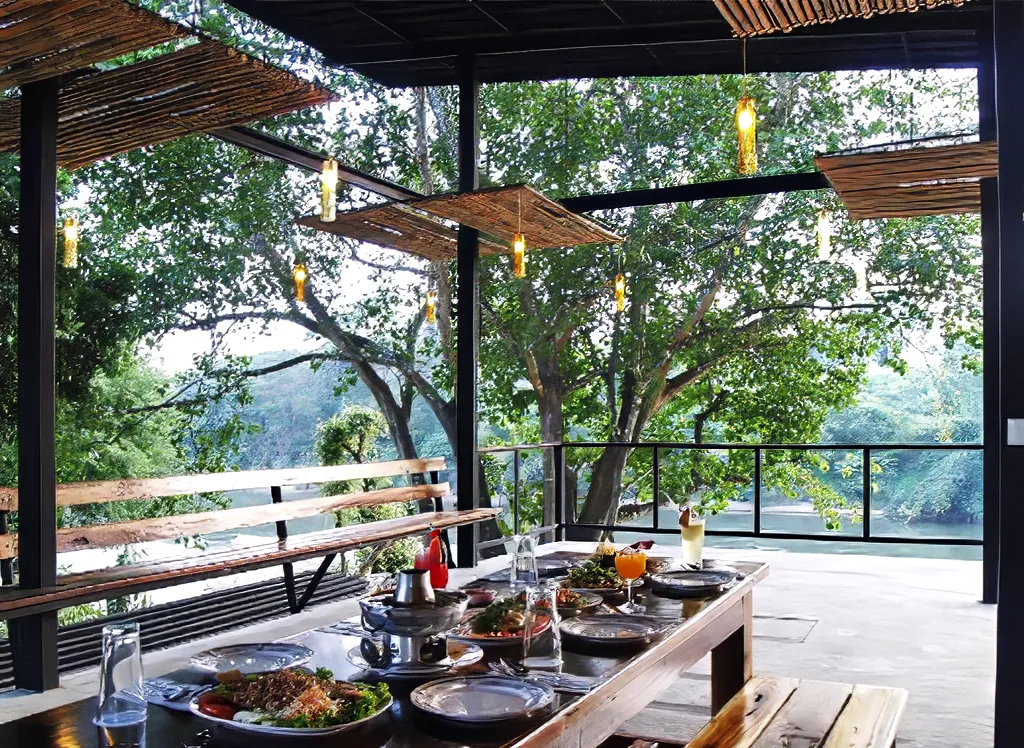 Sie können zum Beispiel Fahrräder ausleihen, Rafting betreiben oder im "Swimmingpool" im Fluss schwimmen gehen. Außerdem gibt es ein Restaurant, das eine Auswahl an thailändischer und internationaler Küche mit Panoramablick auf die Berge und den Fluss anbietet.