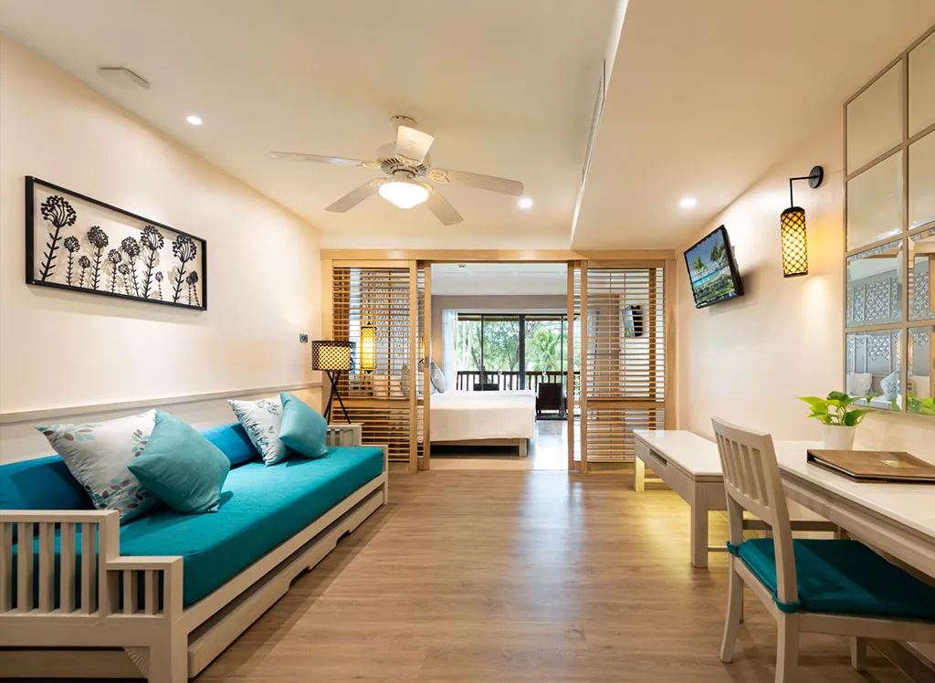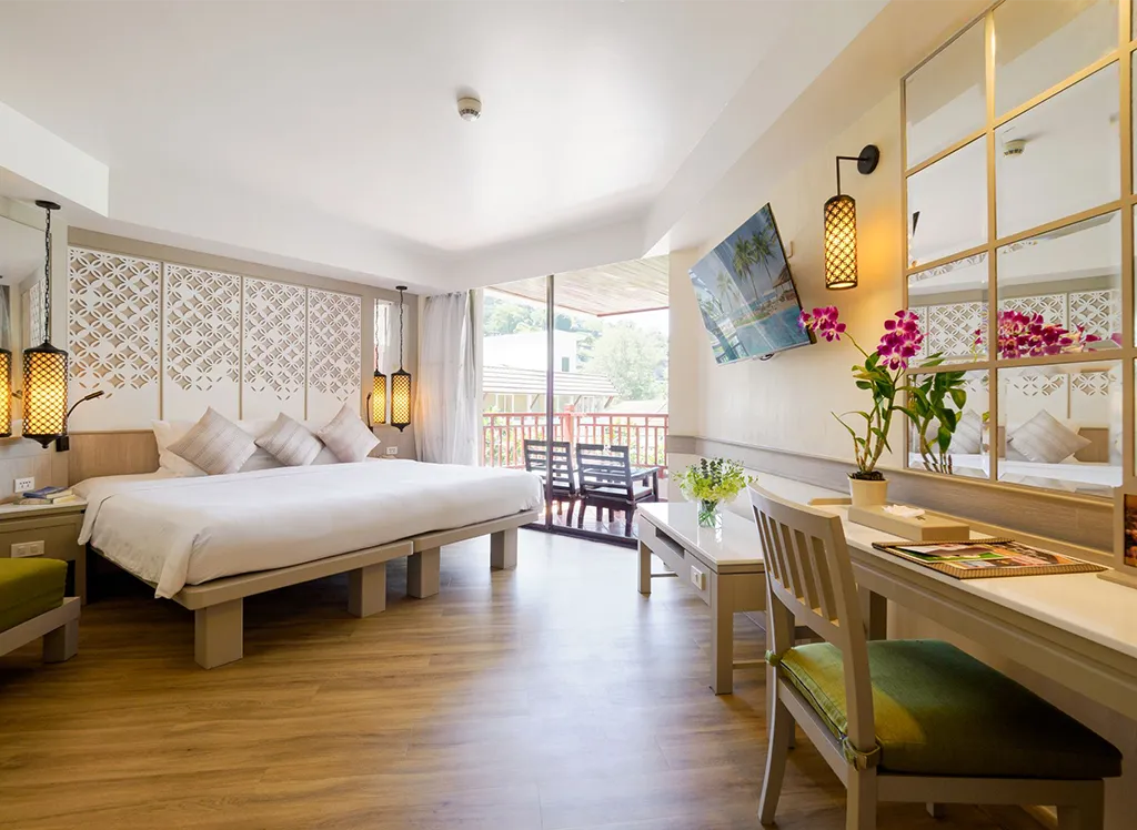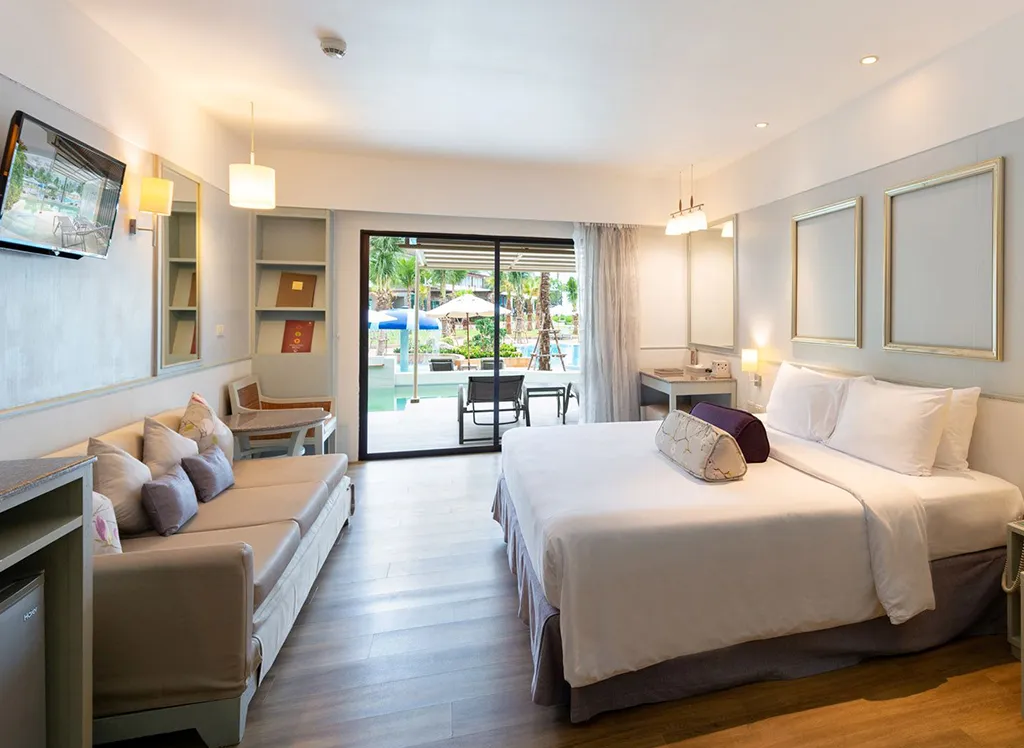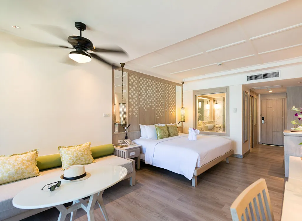 Sie wohnen in gepflegten und geräumigen Zimmern, die sich im Bhuri Wing befinden. Alle Zimmer verfügen über Klimaanlage, Safe, TV, Bad und einen schönen Balkon mit Blick auf den üppigen Garten. Es besteht die Möglichkeit eines Upgrades, z.B. mit direktem Poolzugang (Bhuri Wing) oder Meerblick (Thani Wing).