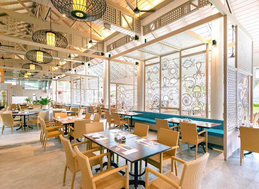 Für den kleinen Hunger gibt es sechs Restaurants und eine Handvoll Bars, darunter eine Poolbar und eine Strandbar, wo man bei einem kühlen Bier oder einem bunten Cocktail den spektakulären Sonnenuntergang über dem Meer genießen kann.