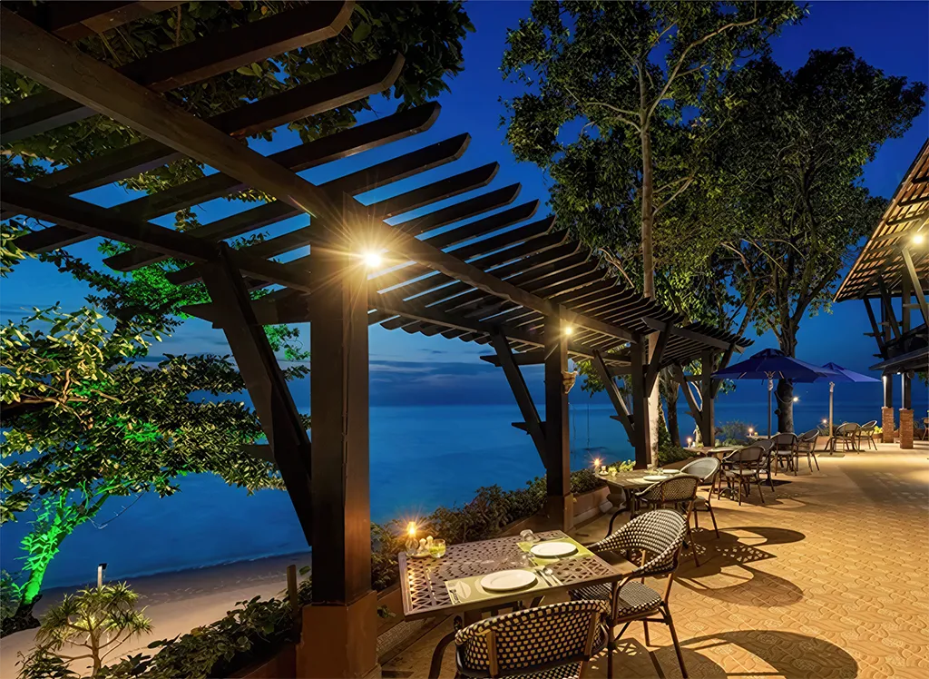 Das Restaurant des Nirvana Beach Resort & Spa liegt oberhalb des Strandes mit herrlichem Blick auf das Meer und serviert köstliche thailändische Gerichte und fangfrische Meeresfrüchte. Wenn Sie etwas anderes ausprobieren möchten, gibt es mehrere kleine Restaurants entlang des Strandes oder Sie können ein Taxi in die Altstadt von Lanta nehmen, die sich auf der Ostseite der Insel befindet.