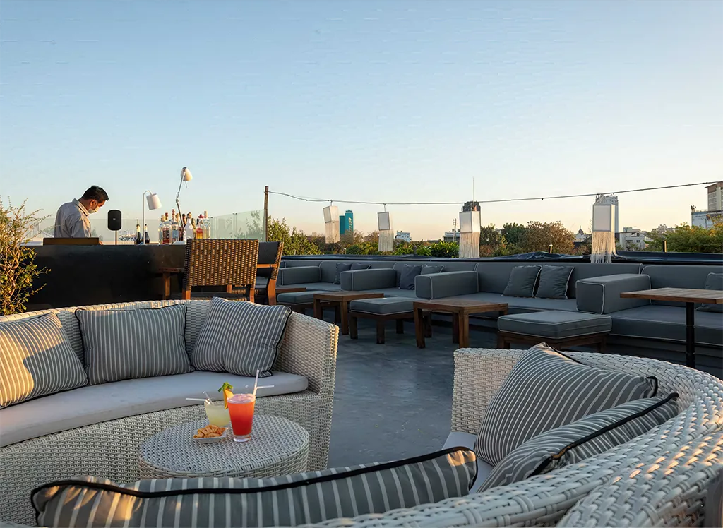 Das Hotel verfügt über zwei schöne Swimmingpools, in denen Sie sich entspannen können, wenn Sie eine Pause von all dem Trubel brauchen. Der eine befindet sich im Garten, der andere auf der schönen Dachterrasse, wo es auch eine gemütliche Dachbar gibt, in der kühles Bier, Wein und bunte Cocktails serviert werden und man einen herrlichen Blick auf den Fluss und den Sonnenuntergang hat.