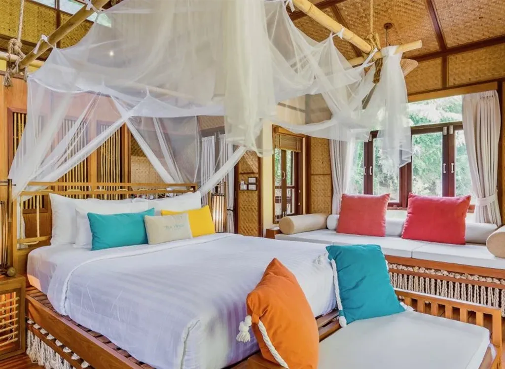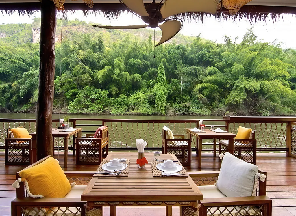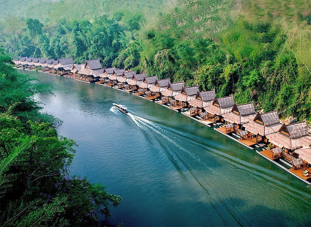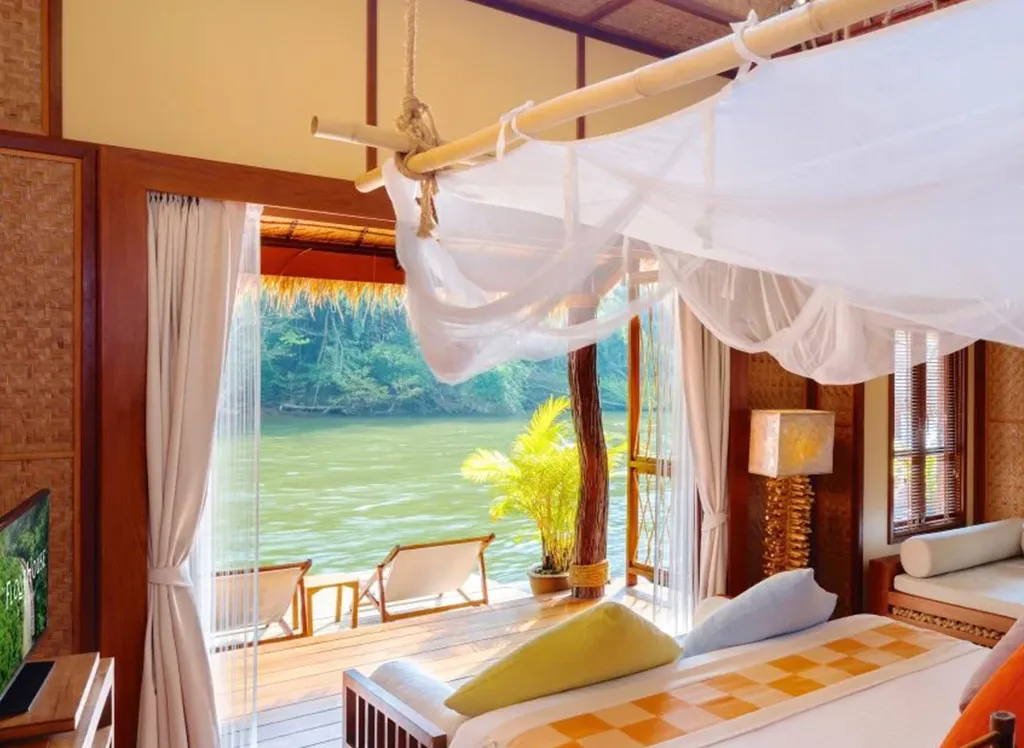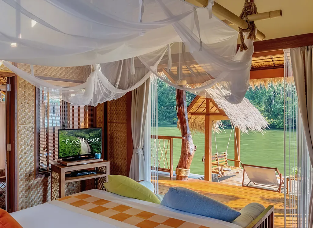 Im The FloatHouse River Kwai Resort wohnen Sie in einer schwimmenden Villa auf dem Fluss Kwai. Hier genießen Sie ein malerisches Erlebnis, umgeben von Fluss, Bergen und thailändischer Natur.