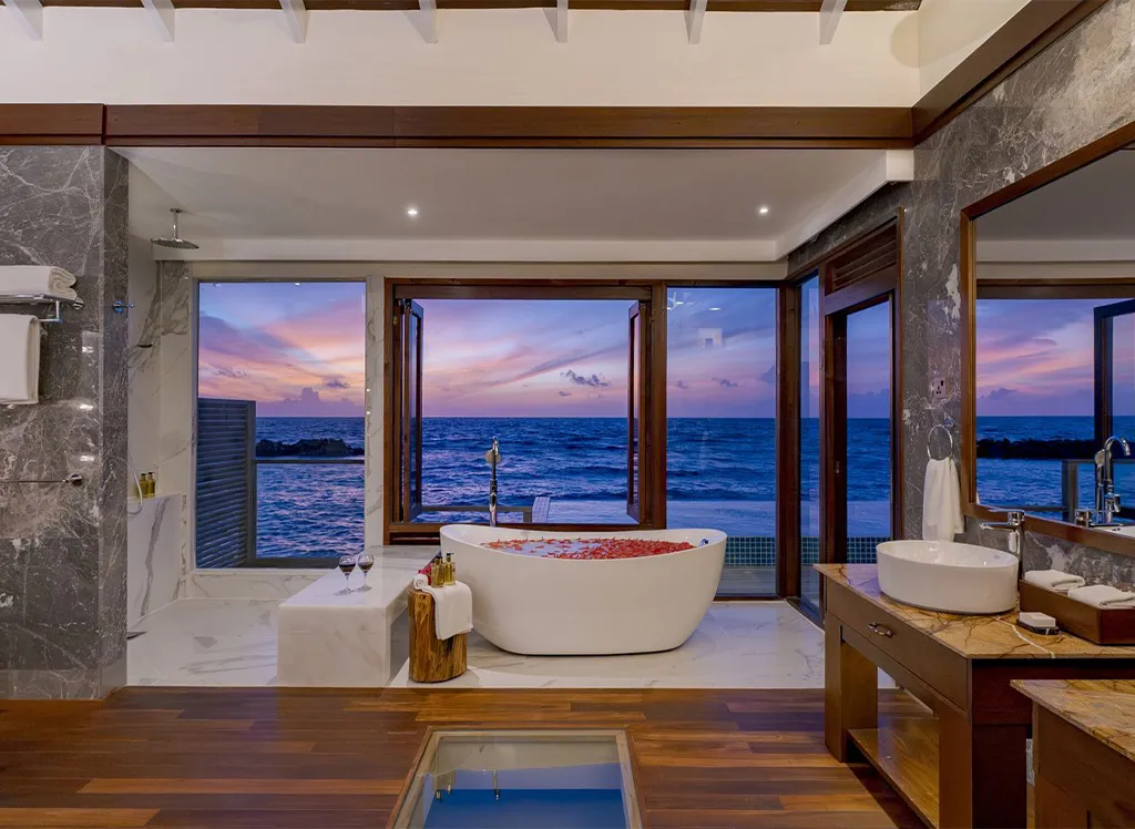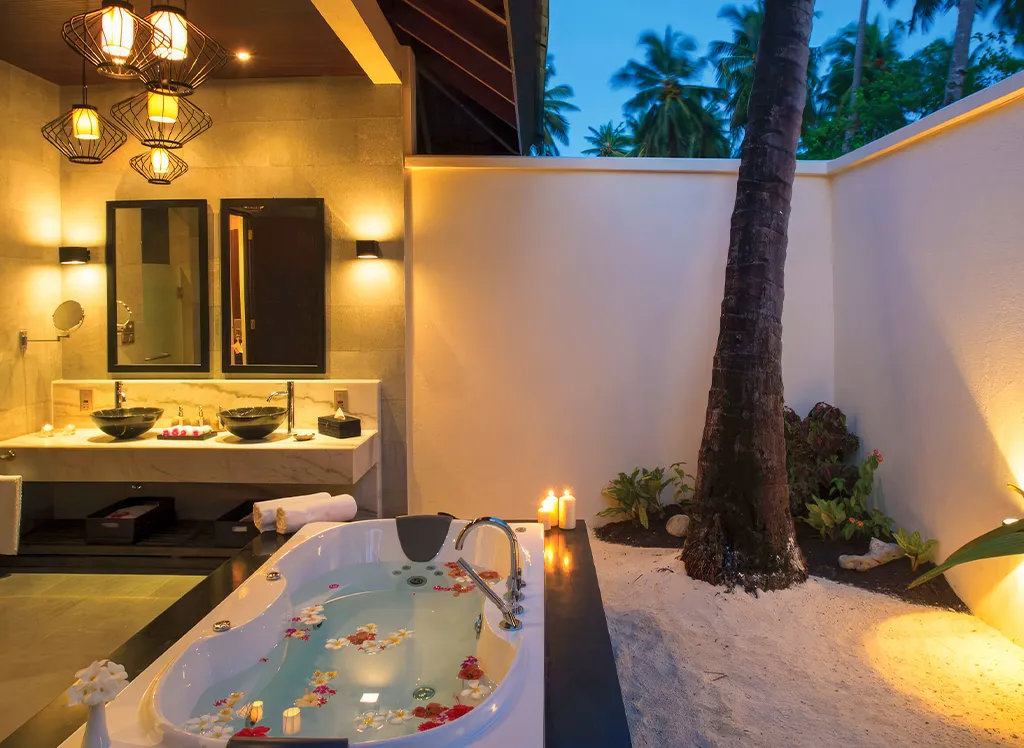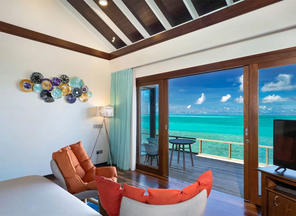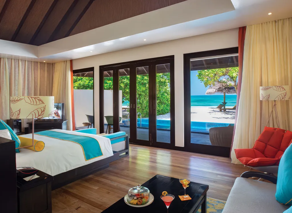 Im Atmosphere Kanifushi Maldives wohnen Sie in wunderschönen Villen direkt am Strand oder auf Stelzen im kristallklaren Wasser. Alle Villen sind wunderschön in hellen Farben dekoriert und mit Klimaanlage, Wi-Fi, TV, Safe, Minibar mit täglicher Auffüllung sowie Kaffee- und Teezubereitungsmöglichkeiten ausgestattet.
