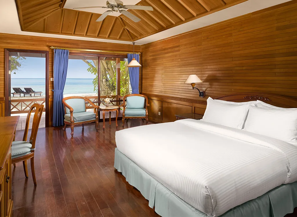 Im Royal Island Resort & Spa wohnen Sie in schönen, freistehenden Villen mit Klimaanlage, Minibar und Wi-Fi. Alle Villen verfügen über eine schöne Terrasse, von der aus Sie den Blick auf den wunderschönen Indischen Ozean genießen können.