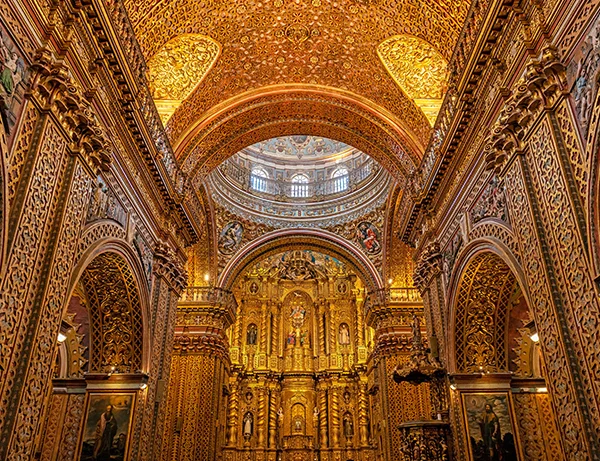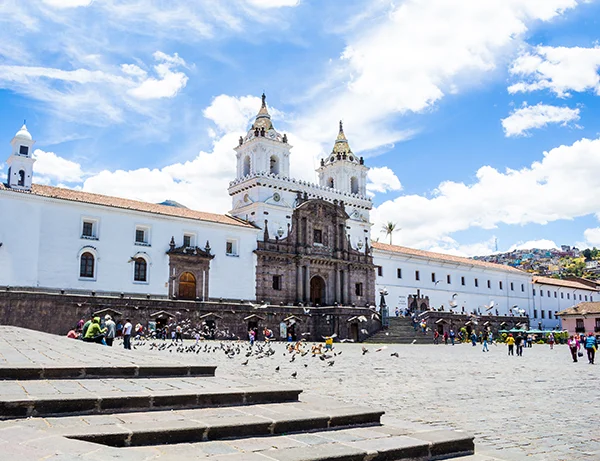 Der Tag beginnt im alten Stadtteil von Quito, wo Sie die stimmungsvollen Straßen zu Fuß erkunden und die architektonischen Juwelen der Stadt erleben, darunter die prächtige goldene Kirche, der lebhafte San Francisco-Platz und der historische Hauptplatz Plaza Grande.