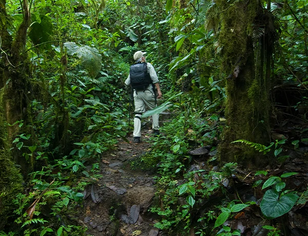 Von Quito aus geht die Reise nach Mindo, einem üppigen Gebiet, das für seinen Nebelwald und seine reiche Tierwelt bekannt ist. Sie wandern entlang von Wasserfällen und durch dichten grünen Wald, wo bunte Vögel wie Tukane und Kolibris zwischen den Baumkronen fliegen. Die Natur hier ist intensiv und präsent – ein ruhiger Kontrast zum Puls der Stadt.
