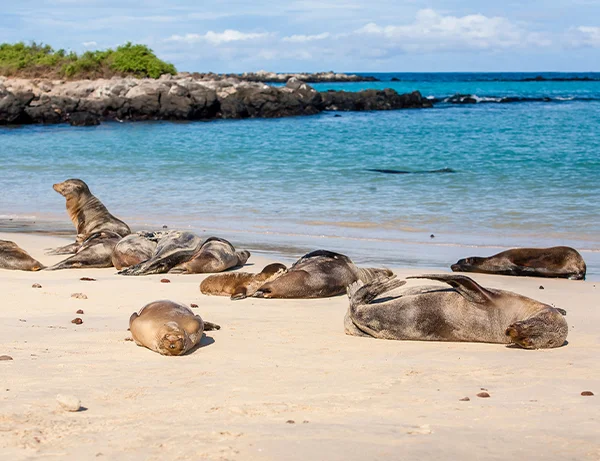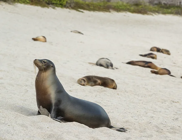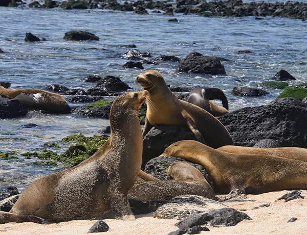 Am Nachmittag geht es nach La Lobería – ein Strand, der für seine großen Seelöwen bekannt ist. Sie sind neugierig und schwimmen oft nah heran, wenn Sie im klaren Wasser schnorcheln. Sie können sie auch auf den Felsen liegen oder im Sand faulenzen sehen. Entlang des Strandes gibt es zudem gute Chancen, Finken, Fregattvögel und mehrere Arten von Darwins Finken zu entdecken. Zwischen den Felsen leben auch Meerechsen – eine Art, die Sie nur auf den Galapagos-Inseln finden.