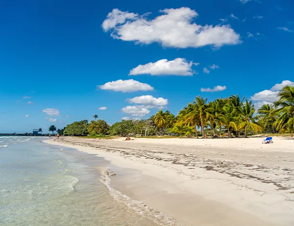 Entlang der Küste finden Sie weiße Sandstrände und klares Wasser, unter anderem bei Varadero. Das Meer um Kuba beherbergt Korallenriffe mit bunten Fischen und Meeresschildkröten, was gute Möglichkeiten zum Schnorcheln und Tauchen bietet.