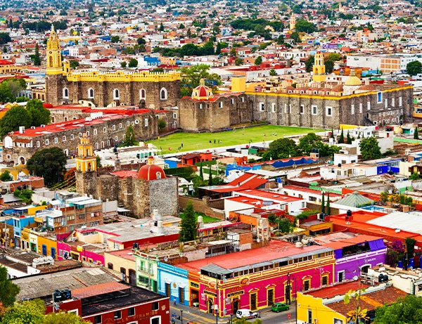 In Begleitung eines privaten Fahrers geht es weiter in die Stadt Puebla, die für ihre schönen Talavera-Fassaden und ihre schmackhafte, abwechslungsreiche Küche bekannt ist, zu der auch „el mole“ gehört - eines der traditionellsten mexikanischen Gerichte.