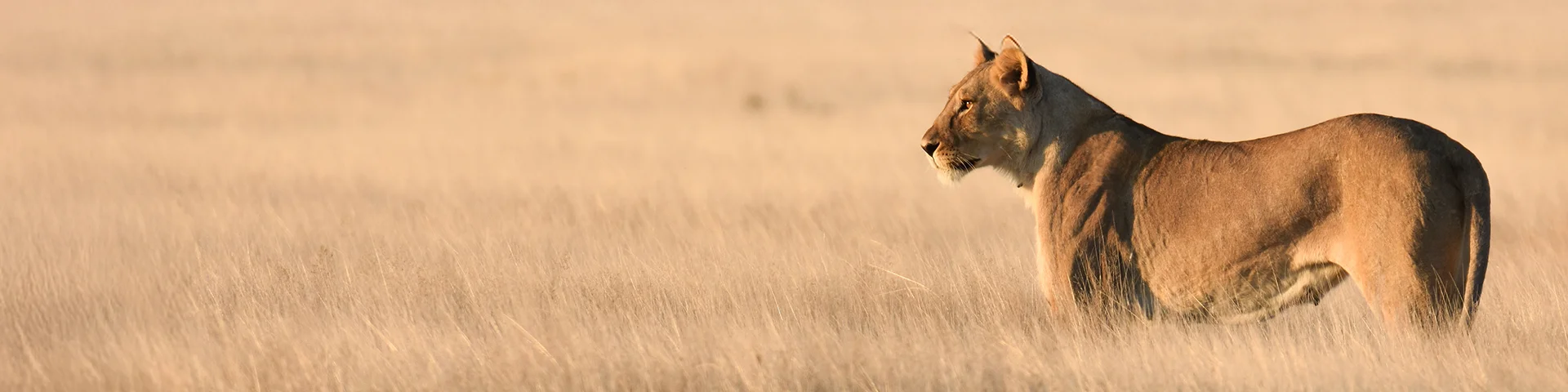 Früh am Morgen machen Sie eine Pirschfahrt im Etosha-Nationalpark. Dies ist normalerweise eine gute Zeit, um die Tiere zu sehen, insbesondere die großen Katzen, die von der nächtlichen Jagd zurückkehren.